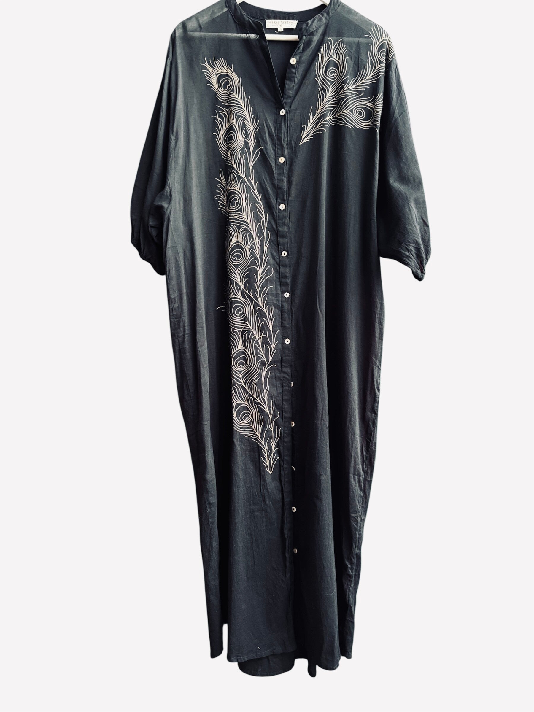 Heerlijke doorknoop-jurk voor de zomer gemaakt van voile katoen. Draag 'm met een onderjurkje, lekker op het strand als tuniek of open op 'n wijde broek met singlet.